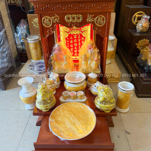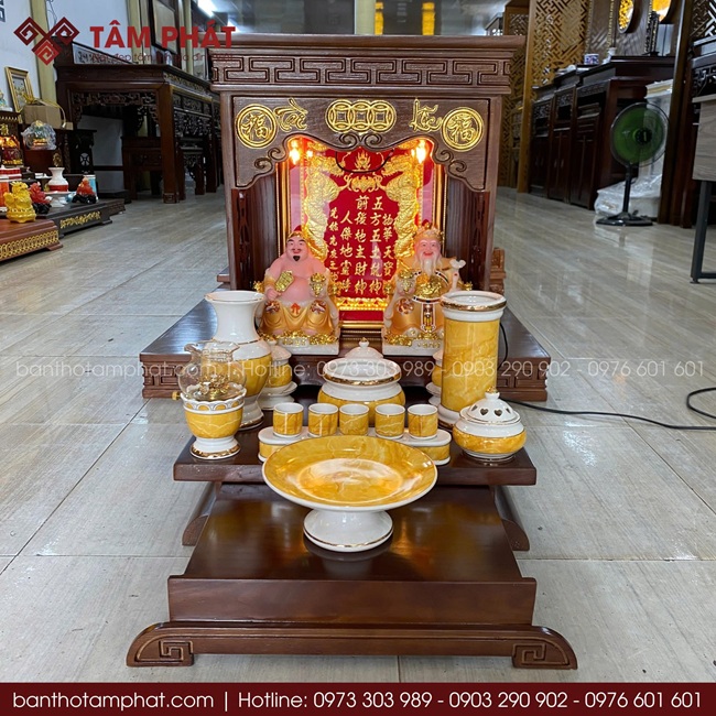 Những sản phẩm thường được kết hợp cùng bàn thờ Ông Địa Thần Tài để tạo nên không gian thờ tự ấm cúng, đẹp mắt, trang nghiêm.
