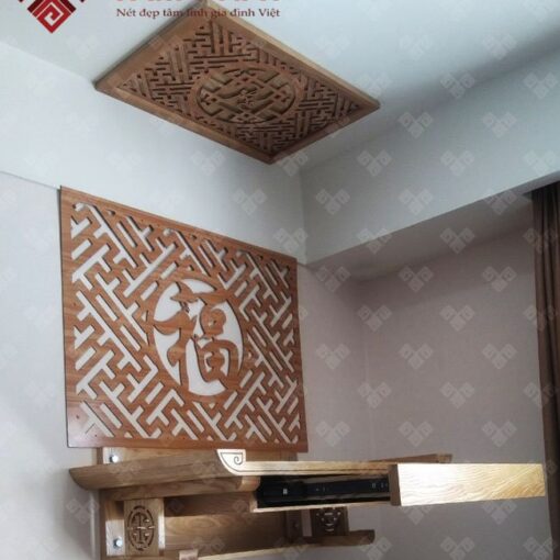 Phần tấm chống ám khói với tác dụng để tản khói ám vào trần nhà và tạo ra sự đối lưu khói hương khi bạn thắp hương. Kết hợp cùng vách ngăn bàn thờ 2 bên mang tới cảm giác riêng tư ấm áp và sang trọng đặc biệt cho không gian thờ cúng.