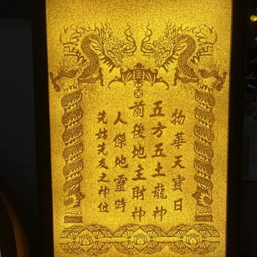 Vật phẩm thờ bài vị Ông Địa không thể thiếu trong Bộ tranh trúc chỉ bàn thờ Ông Địa TC6689. Ngày nay nó được biết đến dưới dạng đèn tranh trúc chỉ, tỏa ánh sáng vàng thay thế các đèn thờ thông thường. Hơn hết, nét đẹp tranh trúc chỉ đem đến cái nhìn ấm cúng sang trọng hơn cho không gian thờ gia đình.