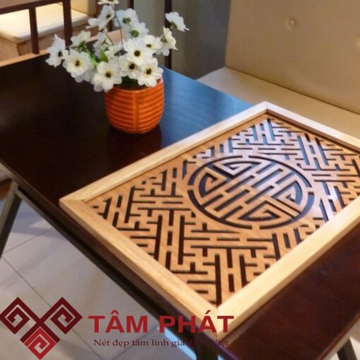 Phần khung tựa như giá đỡ tạo nên kết cấu cân xứng, vững chắc của sản phẩm. Khung đươc làm từ gỗ tự nhiên cao cấp. Thường Tâm Phát sử dụng gỗ sồi, gụ, mít,… để làm khung. Màu sắc của khung sẽ tương ứng với màu họa tiết hoa văn của tấm chống ám khói.Tấm hoa văn tản khói